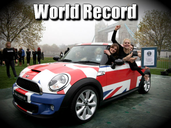 छोटी कार मिनी में 28 लड़कियों ने बैठ बनाया वर्ल्ड रिकार्ड