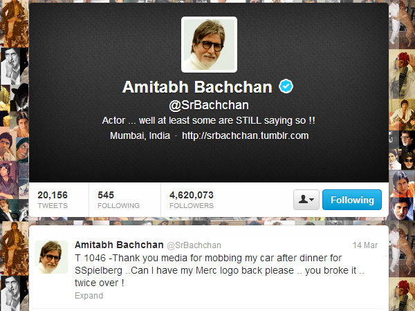 अमिताभ बच्चन ने ट्वीटर पर लिखा है कि "Thank you media for mobbing my car after dinner for SSpielberg ..Can I have my Merc logo back please .. you broke it .. twice over !"