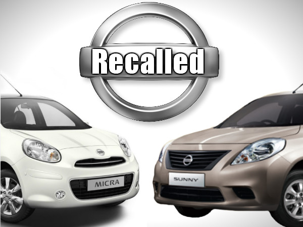 प्राप्त जानकारी के अनुसार निसान इंडिया ने देश में बेची गई 22,188 सन्नी और माइक्रा कारों को वापस लेने की घोषणा की है। इन कारों में मास्टर ब्रेकिंग सिलेंडर में कुछ खराबियां आई हैं, जिनके कारण कंपनी ने इन्हें वापस लेकर समस्या को ठीक करने के बाद ग्राहकों को देने की घोषणा की है। निसान इंडिया मास्टर ब्रेक सिलेंडर बिना किसी चार्च यानी की शुल्क के ही ठीक करेगी।