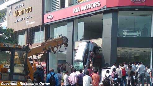 किया सेल्टोस की पनवेल, नवी मुंबई के शोरूम में के डिस्प्ले में कार पार्क करते समय एक सेल्टोस कार शीशे की दिवार तोड़ते हुए एक मंजिला ईमारत से नीचे आ गिरी।