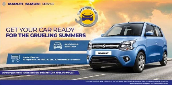मारुति सुजुकी ने देशभर में एक महीने के लिए कूल योर कार सर्विस कैंप शुरू कर दिया है, यह एसी सर्विस व रिपेयर कैंप देश भर में मारुति व नेक्सा डीलरशिप पर 20 अप्रैल से 20 मई तक चलने वाला है। मारुति सुजुकी इस दौरान वाहन को चेक करने वाली है व सर्विस पर कई तरह के ऑफर देने वाली है।