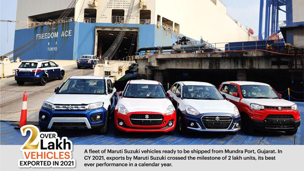Maruti Suzuki ने 2021 में एक्सपोर्ट का बनाया रिकॉर्ड, अब तक सबसे अधिक एक्सपोर्ट
