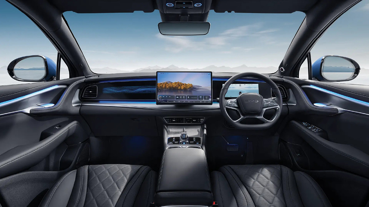 BYD Sealion 7 का डिजाइन आकर्षक और एयरोडायनामिक है। इसमें फुल-LED हेडलाइट्स, 20-इंच अलॉय व्हील्स, मोटराइज्ड डोर हैंडल्स और ट्विन स्पॉइलर्स हैं। इसका कूपे जैसा रूफलाइन और 'Ocean X' थीम स्पोर्टी लुक प्रदान करता है। इन्हीं खासियतों के दम पर Sealion 7 इंडियन लग्जरी इलेक्ट्रिक कार सेगमेंट की एक मजबूत दावेदार बनते जा रही है।