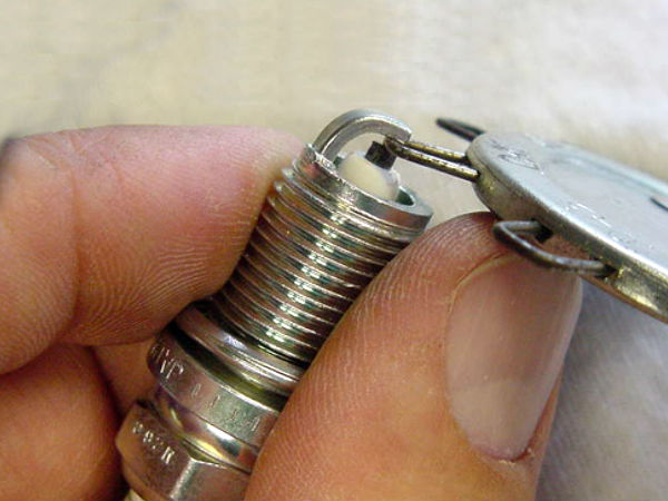 इसके लिए आप प्लग को साफ करने के बाद उसके गैप को एक बार जरूर चेक करें। स्पार्क प्लग के गैप को चेक करने के लिए एक मेटेल का चेकर बाजारों में बिकता है उसमें अलग-अलग राउंड लोहे के तार निकले होतें हैं। जैसा कि चित्र में दिखाया गया है। उससे आप पिन के गैप को चेक कर सकतें हैं। इसमें तार की मोटाई के बराबर ही प्लग के पिन और उपर दिये गये टिप में दूरी होनी चाहिए।