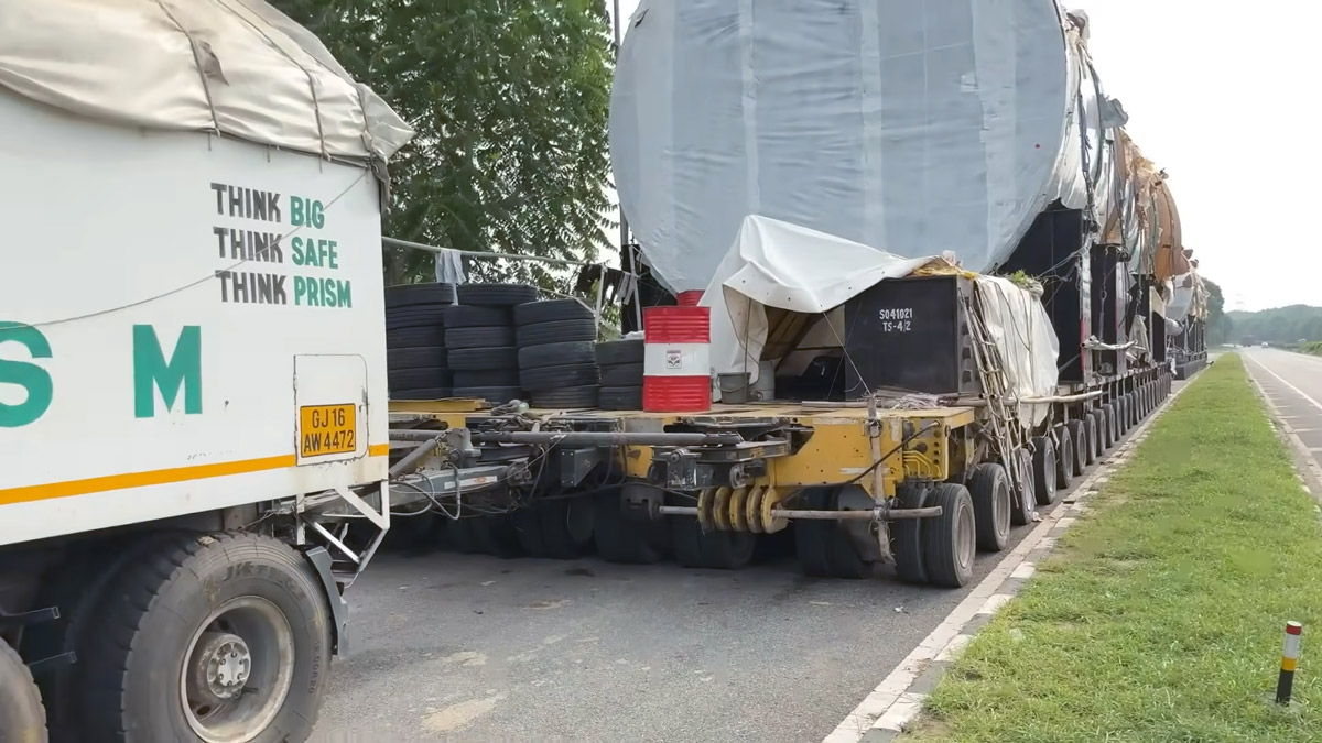 यह विशालकाय ट्रक गुजरात के कांडला बंदरगाह से करीब 1,150 किलोमीटर दूर हरियाणा के पानीपत तक पहुंच गया है। एक वर्ष से अधिक की यात्रा में, फटने सहित अन्य कारणों से 200 टायर बदले गए हैं। यह विशालकाय ट्रक प्रतिदिन लगभग 25 किलोमीटर ही चलता है।