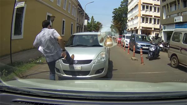 घटना गोवा के पणजी की है, जहां एक राहगिर रॉन्ग-साइड कार देखकर इतना भड़क गया कि उसे बीच रास्ते रोक कर चिल्लाने लगा। काफी चौड़ी सड़क है, जिसके बीच में कोई डिवाइडर नहीं बना है पर बीच में ट्रैफिक कोन रखे हुए हैं। इसके कारण लोग सुविधाजनक तरीके से आसानी से आ जा सकते हैं। लेकिन कुछ लोगों को इतनी जल्दी रहती है कि उन्हें किसी नियम कायदे का ख्याल नहीं होता। इसी सड़क पर जब एक स्विफ्ट कार वाला रॉन्ग-साइड से अपनी गाड़ी लेकर चले आता है तो राह चलते हुए एक व्यक्ति ने उसे बीच में रोक लिया।