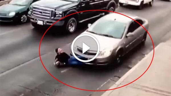 महिला भागकर सड़क पार करने की कोशिश करती है लेकिन हाई हील की सैंडल पहने होने के कारण वो तेजी से भाग नहीं पाई। भागते-भागते वो स्लीप हो गई और पीछे से आ रही एक कार के नीचे आ गई।