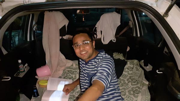 एहतियात के तौर पर वह अपने परिवार से दूरी बनाये हुए हैं और अपनी मारुति इग्निस कार में रह रहे हैं। उन्होंने अपनी जरूरतों का कुछ सामान भी कार के अंदर रखा है।