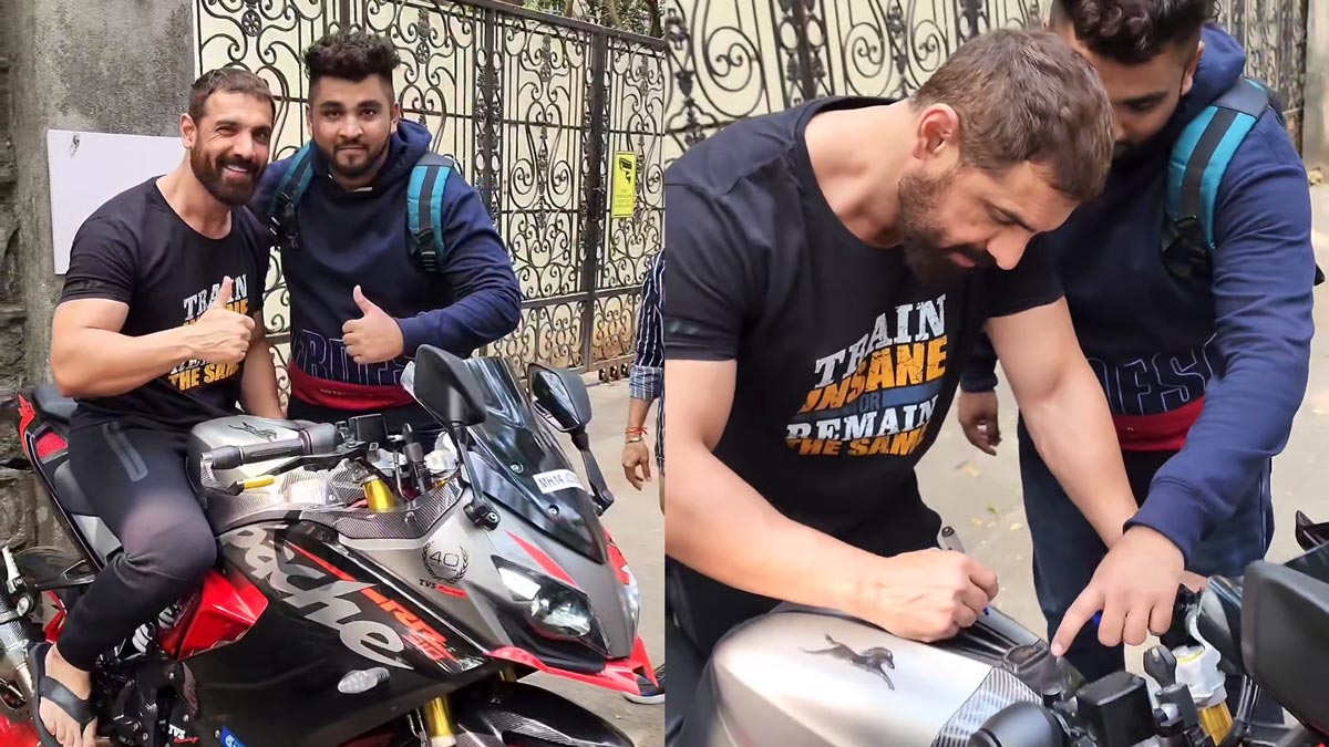 फैन ने कहा कि ये ऑटोग्राफ उनके लिए काफी महत्वपूर्ण है। वीडियो के अंत में, जॉन अब्राहम अपनी अप्रिलिया आरएसवी 4 आरएफ पर सवार होकर निकल जाते हैं। हाल ही में जॉन अब्राहम को डुकाटी पैनिगेल वी4 के साथ मुंबई की सड़कों पर स्पॅाट किया गया था।