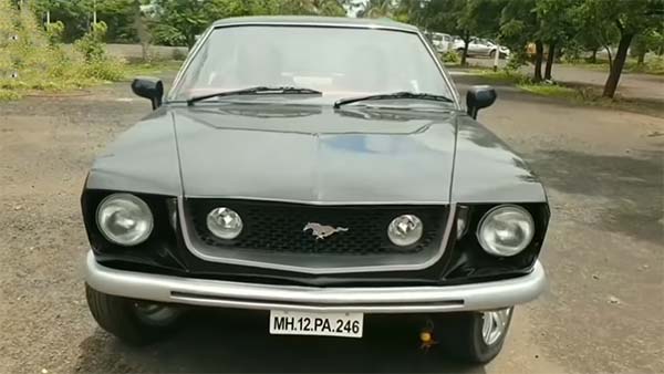 कार के फ्रंट हिस्से को बिल्कुल मस्टैंग की तरह ही डिजाइन दिया गया है। सिग्नेचर मस्टैंग सिम्बॉल, मेटल बंपर्स, हेडलैंप्स इसे बिलकुल मस्टैंग का ही लुक देते है। मॉडिफाई करने वाले ने हर चीज बहुत बारीकी से की है।
