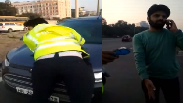 वैसे तो ट्रैफिक वाले घूस खाने के लिए बदनाम है लेकिन जब कई लोग अपना काम इमानदारी से करने की कोशिश करते हैं तो उनपर आफत आ जाती है। ऐसा ही एक वीडियो हरियाणा के गुरुग्राम से आया है।