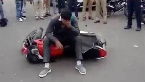 बाइक को सड़क में पटकने के बाद व्यक्ति अपने ही बाइक पर बैठ गया तथा रोने लगा, इस सब घटना को वहां खड़े पुलिस वाले चुपचाप देखते रहे। इसके बाद पुलिस वाले उन्हें समझाते हुए देखे जा सकते है।