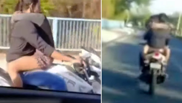 TVS Apache के फ्यूल टैंक पर लड़की को बैठा युवक ने किया स्टंट, इंटरनेट पर वायरल हुआ वीडियो