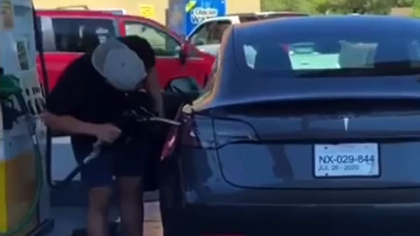 यूएस जैसे देश में इलेक्ट्रिक कार खूब धूम मचा रहे हैं तथा टेस्ला जैसी कंपनी इस क्षेत्र ममें राज कर रही है। हाल ही में एक ऐसा ही वीडियो सामने आया है जिसमें एक इलेक्ट्रिक कार ड्राईवर पेट्रोल पंप पर चला गया और पेट्रोल डालने की कोशिश करने लगा।