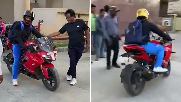 बाइक से आधी कीमत की हेलमेट पहनते हैं धोनी, टीवीएस अपाचे RR310 राइड करते हुए स्पॉट
