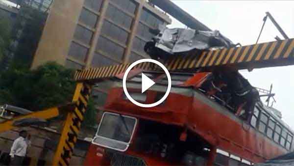 भारी बारिश के कारण रास्ते पर जाम लगा था। इस जाम से बचने के लिए डबल डेकर बस के ड्राइवर अपने तय रूट से अलग रास्ते पर जाने लगा। लेकिन उसे अंदाजा नहीं था कि आगे ऐसा हादसा हो सकता है। आगे जाकर बस ओवरहेड रोलिंग से टकरा गई। भाग्यवश इस हादसे में किसी को कोई चोट नहीं आई है।