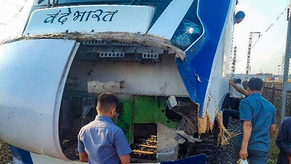 तीसरी बार बैल से टकरा कर क्षतिग्रस्त हुई वंदे भारत एक्सप्रेस, अगला हिस्सा टूटा