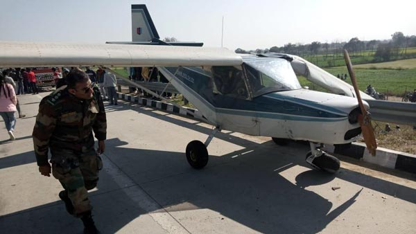 एनसीसी ट्रेनिंग एयरक्राफ्ट ने की एक्सप्रेसवे पर एमरजेंसी लैंडिंग, देखें तस्वीरें