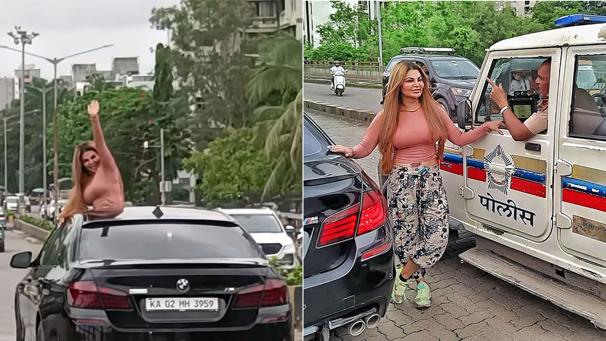 सनरूफ से बाहर निकल फोटो खिंचवा रही थी राखी सावंत, पुलिस ने दी एक्ट्रेस को चेतावनी