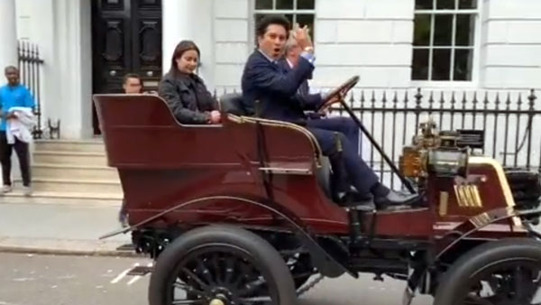 लंदन में 119 साल विंटेज कार चलाते दिखे सचिन तेंदुलकर