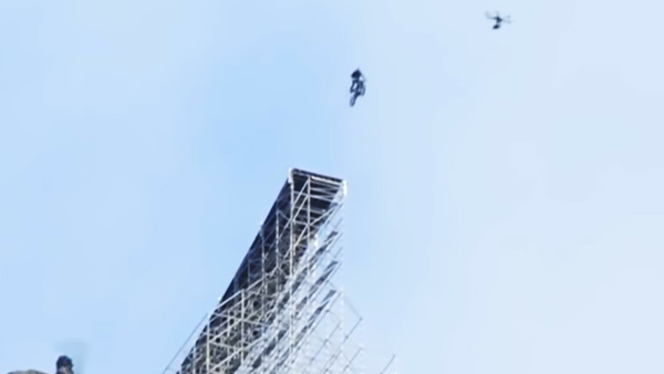 बाइक के साथ-साथ टॉम भी नीचे गिरते हैं लेकिन जैसे ही वह थोड़ा नीचे आते हैं अपनी पैराशूट खोल लेते हैं। यह स्टंट सीन वाकई में बहुत खतरनाक और हैरतअंगेज है।