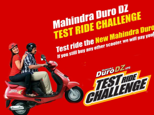 कंपनी का दावा है कि यदि आप एक बार महिन्द्रा ड्यूरो का टेस्ट ड्राइव कर लेंगे तो आपको दूसरी कोई भी स्कूटर नहीं भायेगी। आपको बता दें कि हय आफर आगामी 30 अप्रैल तक ही वैध है तो यदि आपको महिन्द्रा की चुनौती स्वीकार है तो देर न करें। गौरतलब हो कि टेस्ट ड्राइव के दौरान नकद पुरस्कार दिये जाने के कंपनी ने कुछ नियम और शर्ते भी तय की है।