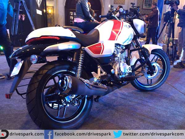 इसमें छोटी बिकिनी फेयरिंग और लो फ्यूल टैंक दिया गया है जो इसे रेट्रो लुक देते हैं। बाइक के रिमूवेबल रियर काउल की वजह से बजाज वी15 एक कैफे रेसर की फीलिंग देती है।