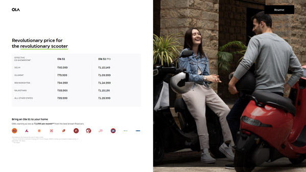इन दोनों ही इलेक्ट्रिक स्कूटर की प्री-लॉन्च बुकिंग जुलाई में ही शुरू कर दी गई थी। जिन ग्राहकों ने Ola के इलेक्ट्रिक स्कूटर को प्री-बुक किया है, वे अब शेष राशि का भुगतान करके और स्कूटर के रंग और वैरिएंट को अंतिम रूप देकर इसे खरीद सकते हैं।