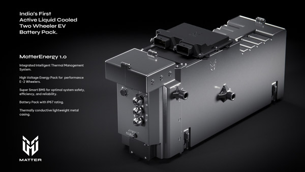मैटर एनर्जी ने कार एंड बाइक से बातचीत में खुलासा किया कि इस बाइक के साथ आने वाली लिथियम आयन बैटरी अन्य प्रकार की लिथियम बैटरियों से काफी अलग होगी। कंपनी का कहना है कि यह बैटरी लिक्विड कूलिंग तकनीक के साथ आएगी, जिससे बैटरी अत्यधिक तापमान पर भी ठंडी रहेगी और अच्छी तरह काम करेगी। कंपनी का कहना है कि इस बाइक का बैटरी मैनेजमेंट सिस्टम (BMS) काफी अधिक तापमान पर भी काम करने में सक्षम होगा।