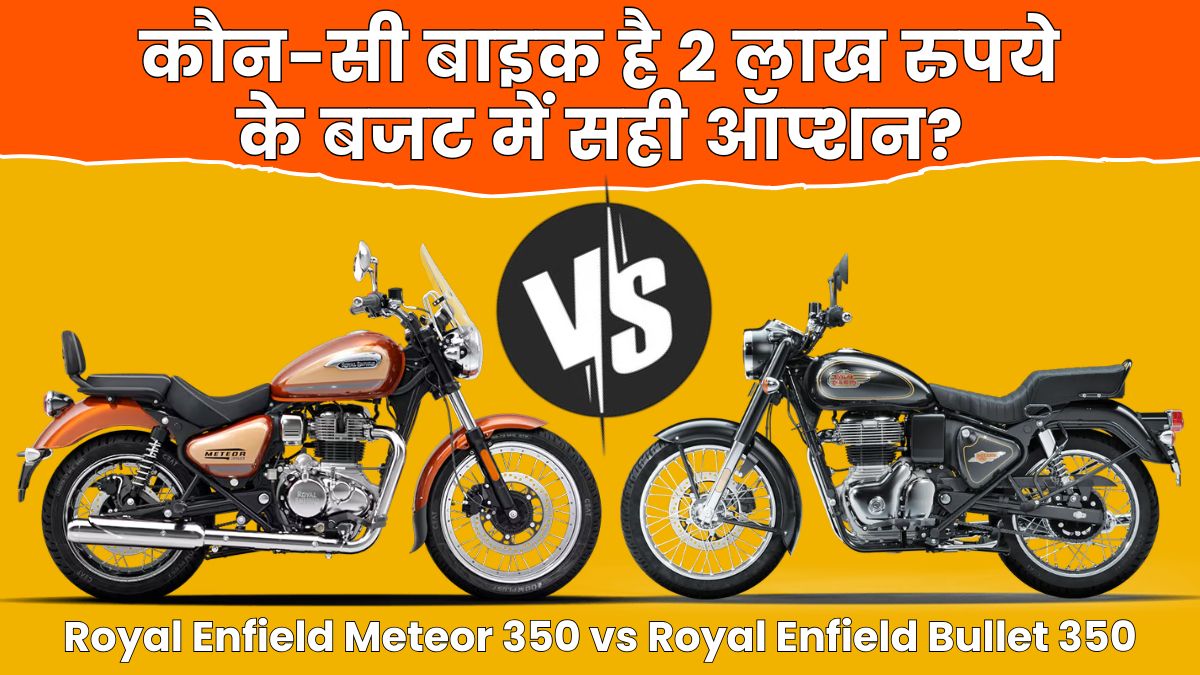 Royal Enfield Bullet 350 और Royal Enfield Meteor 350 दोनों एक ही ब्रांड की 350cc मोटरसाइकिलें हैं, लेकिन इनका स्वभाव बिल्कुल अलग है। Bullet जहां दशकों पुरानी क्लासिक पहचान को आगे बढ़ाती है, वहीं Meteor 350 उसी विरासत को आधुनिक क्रूजर अंदाज में पेश करती है। एक बाइक परंपरा का प्रतीक है, तो दूसरी उसी परिवार की आधुनिक सोच। हम यहां पर आपको इन दोनों की तुलना करते हुए विस्तार में बता रहे हैं कि दोनों (Royal Enfield Meteor 350 vs Royal Enfield Bullet 350) में कितना अंतर है और किसे खरीदने में सबसे ज्यादा फायदा होगा?